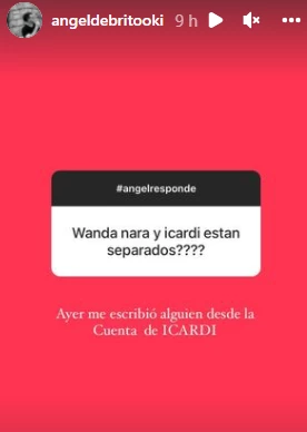 Desde su cuenta personal de Instagram, el periodista especializado en celebridades, Ángel de Brito, interactuó con sus seguidores y le consultaron sobre el famoso matrimonio. Allí comentó que alguien le habría mandado un mensaje, sin revelar el contenido, desde la cuenta de Icardi. Según él, el mensaje no habría sido enviado por el jugador.