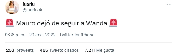 En esta oportunidad, la periodista y ex participante de MasterChef, Juariu, publicó un tweet en el que compartía la primicia de que Icardi había dejado de seguir a su mujer de las redes sociales nuevamente.
