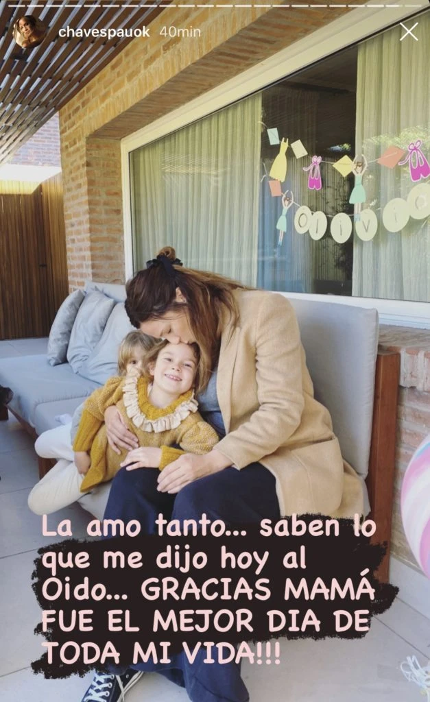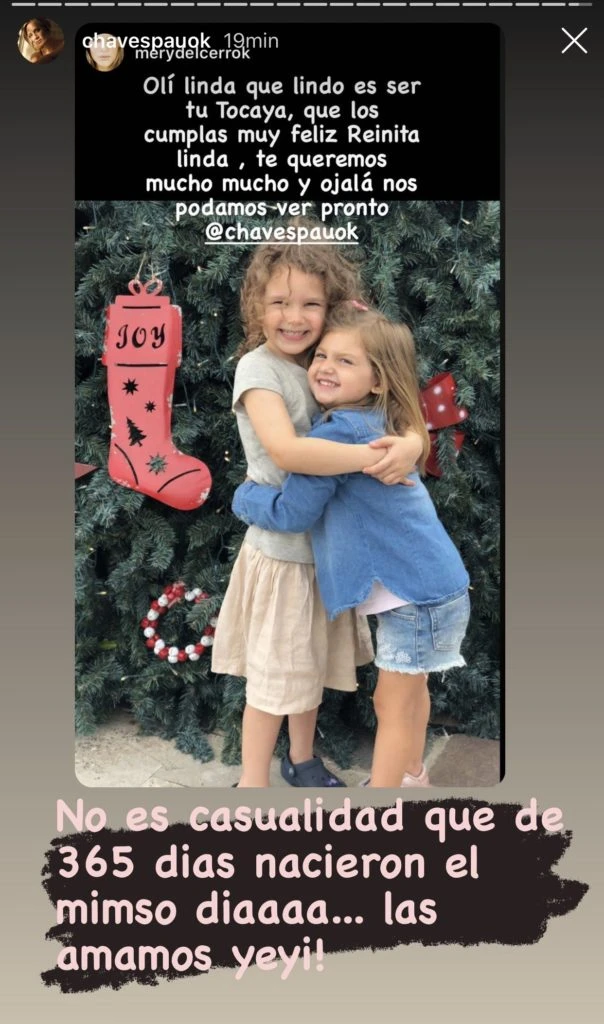 Primero fue la conductora de Bake off Argentina (Telefe) quien junto a una foto actual y otra del nacimiento de Oli escribió: "Feliz Cumple amor de mi vida... 7 años desde que nos tocamos, sentimos y unimos para siempre... Gracias x hacerme conocer el amor mas lindo del mundo... gracias por ser tan buena , gracias por tu empatía, sos tan especial mi amor... Sos lo más dulce del mundo... me atravesaste por completo, llegaste para cambiar mi mundo... Te amo para siempre mi compañerita. No dejo de emocionarme en cada cumpleaños y recordar cada instante tu nacimiento y de nuestra vida juntas".