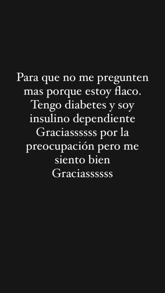 "Para que no me pregunten más por qué estoy flaco, tengo diabetes y soy insulino dependiente. Gracias por la preocupación pero me siento bien", confesó el conductor en su feed de Instagram para despejar todas las dudas con respecto a su salud.