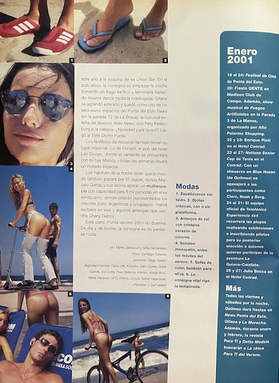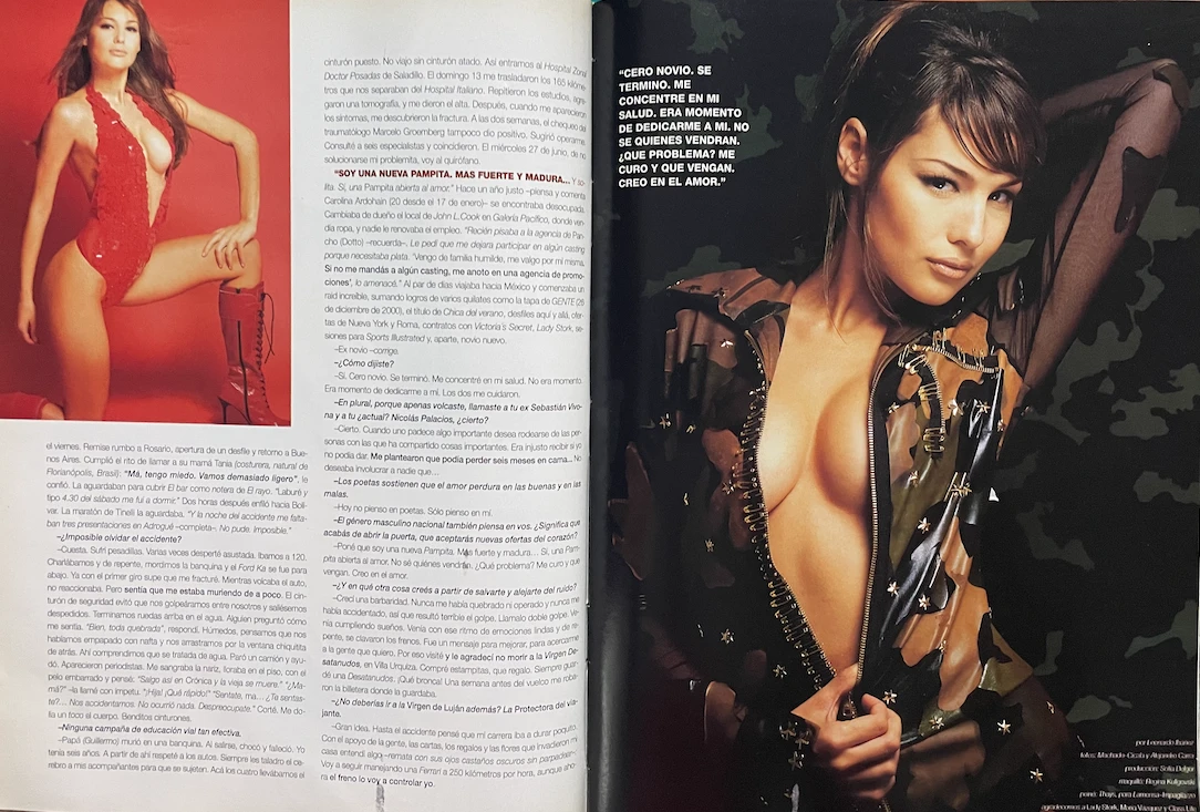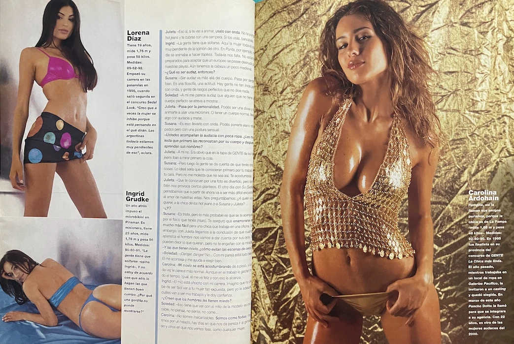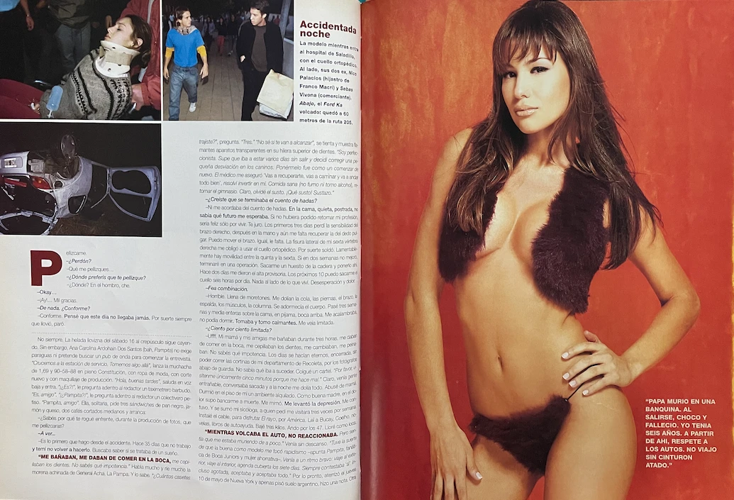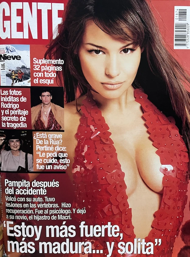 Bajo el título de "Chicas audaces" y en compañía de su colega Susana Sadej, "se animan a todo e imponen las modas más calientes -resaltaba la venta de tapa-; desde el microbikini hasta los hot jeans... Prometen ser las diosas del verano 2001", acertaba aquel copete. Una promesa, la de Pampita, ya se ha dicho, que duró muy poco: porque mutó -también se ha dicho más arriba- en una realidad que la marcaría para siempre. ¿¡Para siempre!?... Acompáñenos, tapa a tapa, y al final de la nota nos cuenta.