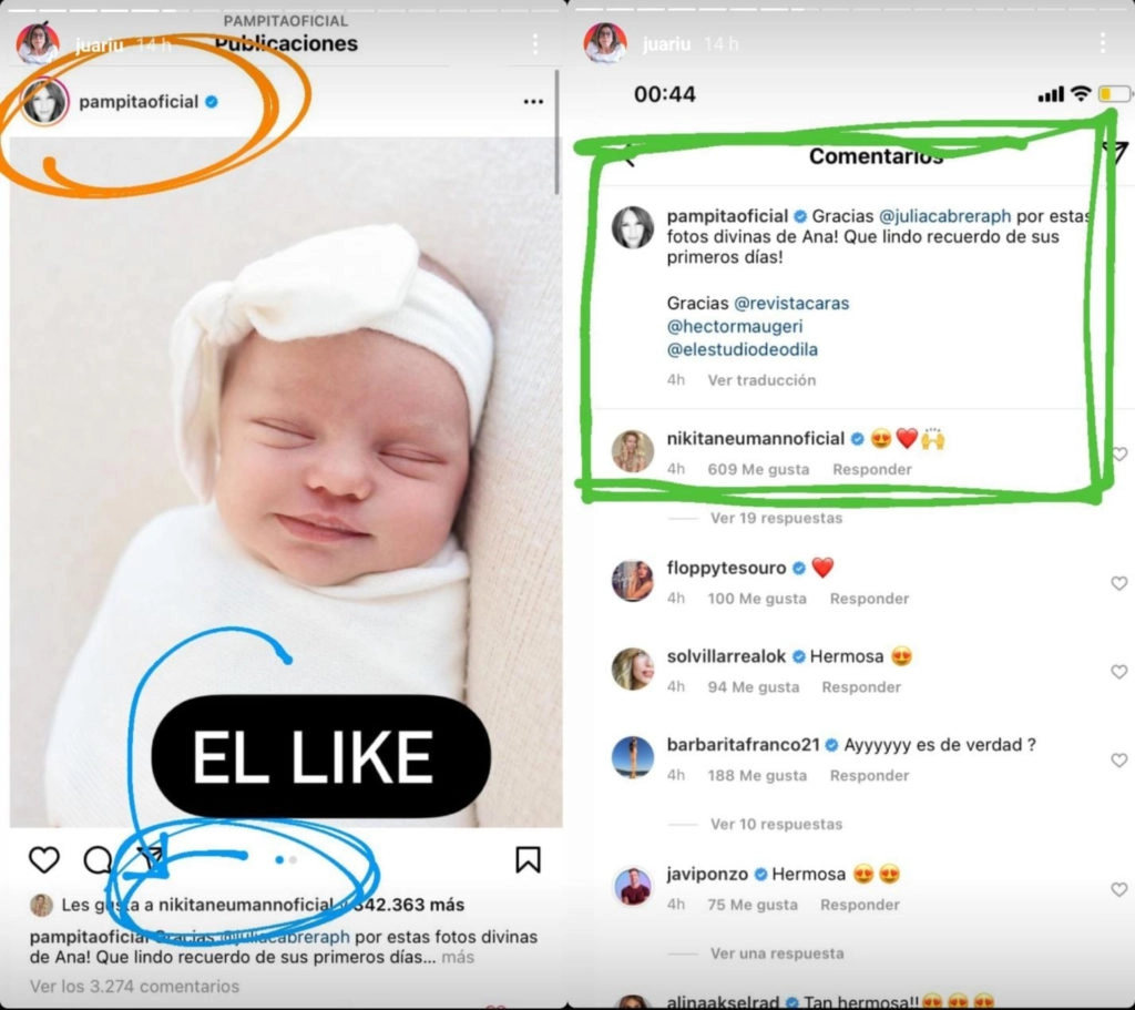 O al menos así parece según el último gesto que tuvo Neumann en redes sociales. Juariu, la detective de las redes sociales, fue la encargada de dar a luz en el like y el comentario que le dejó Nicole a la jurado de La Academia en su último posteo con una serie de adorables fotografías de Ana García Moritán Ardohain, la beba que tuvo con Roberto García Moritán y que nació el pasado 22 de julio.