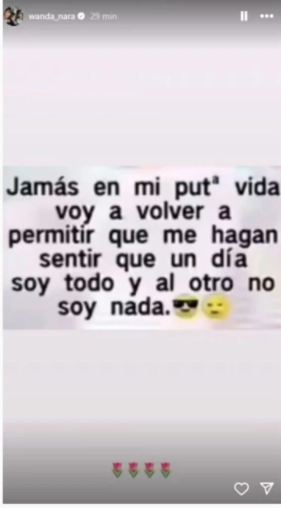 Junto a la dura frase, que daría entender que no se sintió lo suficientemente valorada por Mauro Icardi, la también modelo y empresaria sumó unos emojis de flores.