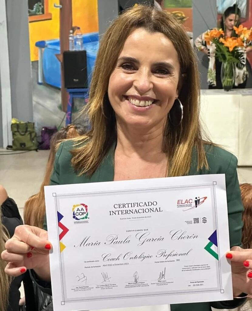 Cuando le comentamos a Paula García que ella podría seguir trabajando perfectamente en los medios argentinos desde España, ella nos realiza una confesión: "Hace cuatro años, cuando estaba pensando un poco en 'Si me voy, ¿qué hago de mi vida?, ¿sigo siendo periodista?', decidí empezar a estudiar Coaching Ontológico, porque creo que el día de mañana es una herramienta que puedo usar en cualquier lado. Es que a mí me encanta ayudar y acompañar a las personas, y siento que así podría unir un poco mi propósito de vida".