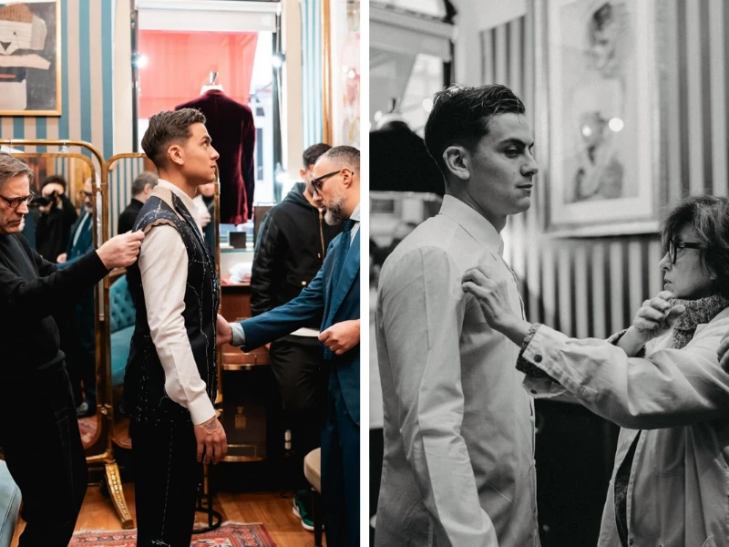 En su perfil de Instagram, Dybala escribió: "Preparándome para un día especial", y público tres fotos donde se aparece en una importante casa de moda de Roma, en la prueba de su traje.