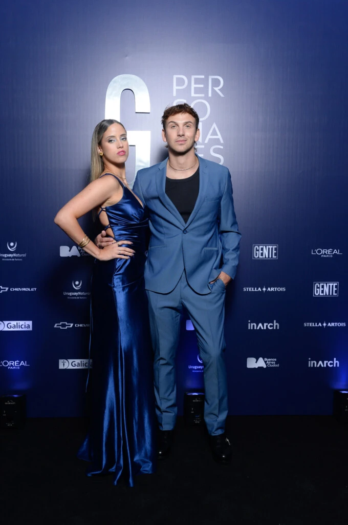 Se trata de Bautista Mascia, el último ganador de Gran Hermano, que estaba acompañado por su pareja, Denise González, y se mostraron muy enamorados en la alfombra blue de GENTE, y matcheados con looks en azul.