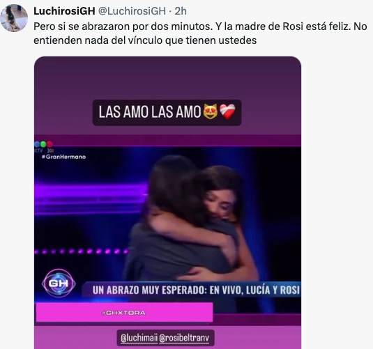 Rosina Beltrán se convirtió en la última eliminada de Gran Hermano y, como era de esperar, todos estaban a la expectativa de qué pasaría en el ansiado encuentro con Lucía Maidana. Si bien frente a cámaras las exjugadoras se mostraron con mucha ternura, un usuario de internet filtró un video que nadie vio.