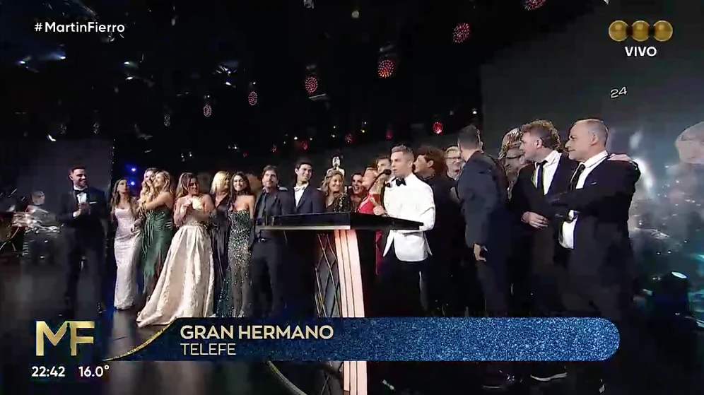 A lo largo de la gala se fueron entregando diferentes premios y los ganadores subían al escenario para agradecer la distinción. Esto mismo sucedió cuando Santiago del Moro anunció que Gran Hermano ganó en la terna a Mejor Reality. Rápidamente, todos los que participaron en el programa y estaban presentes en la fiesta, subieron al escenario.