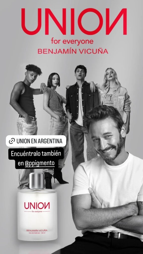 Con el nombre de Unión, presentó en Argentina esta fragancia unisex que ya había dado a conocer en su tierra natal. Allí estuvieron presentes variedad de figuras del espectáculo, como Susana Giménez y el empresario de medios Facundo Garayalde.