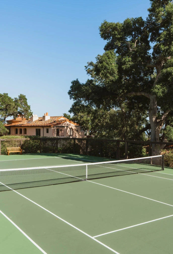 La mansión de los flamantes padres, que tienen como vecinos ilustres a Meghan Markle y el príncipe Harry, cuenta con sala de conferencias y cancha de tenis.