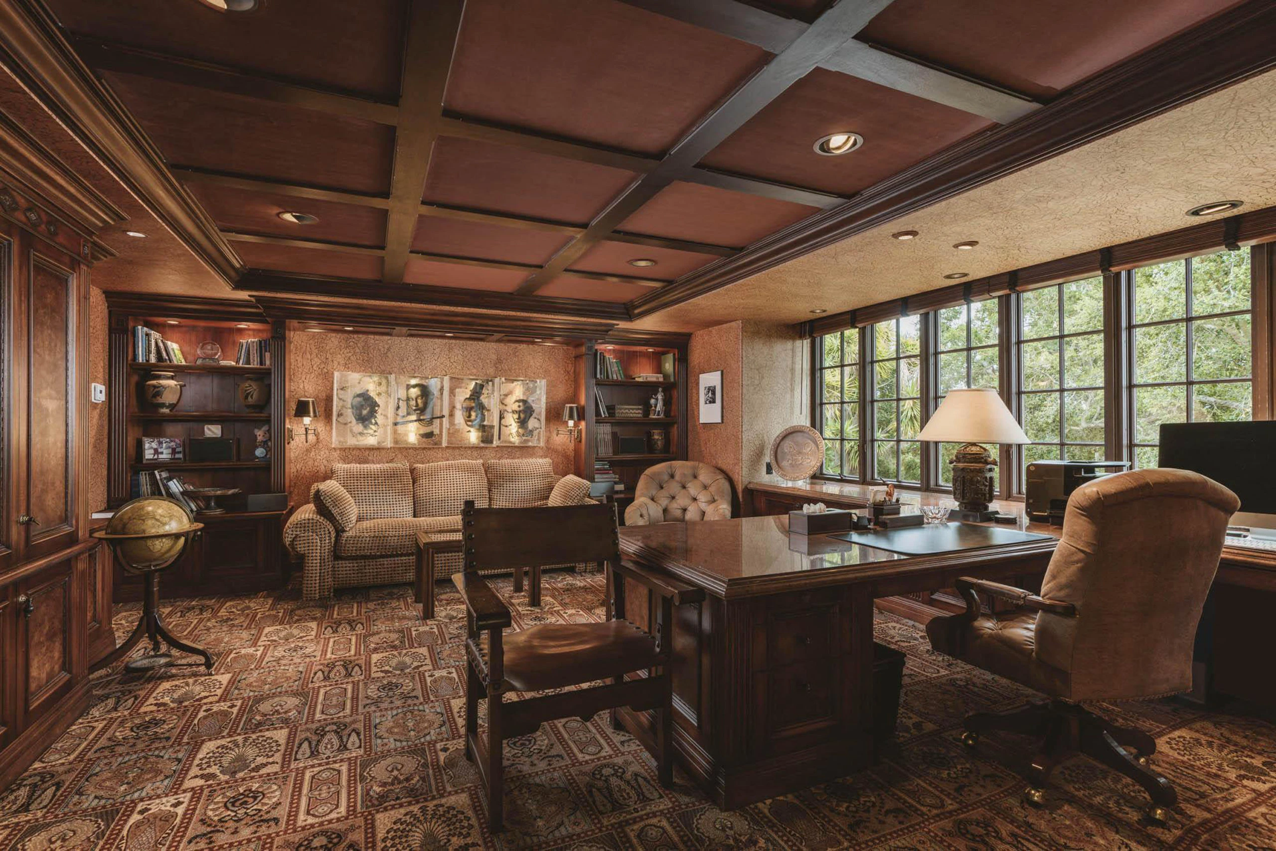 Esta residencia de tres pisos, construida en un predio de 36 mil metros cuadrados, cuenta con seis dormitorios y 12 baños. Data de 1934 y es de estilo mediterráneo. Tiene pisos de maderas nobles, decoración en tonos neutros e impresionantes puertas francesas, que dan a una amplia terraza de ladrillo a la sombra de viejos robles.