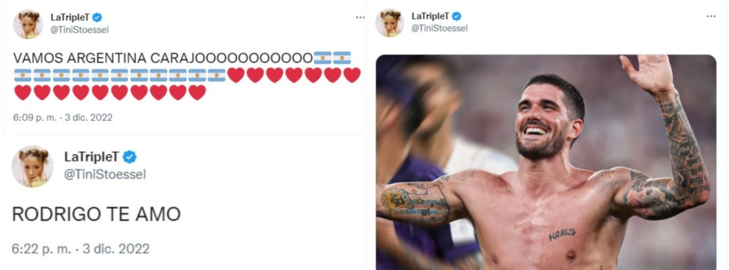 Tini felicitó a Rodrigo De Paul tras el triunfo de Argentina ante Australia
