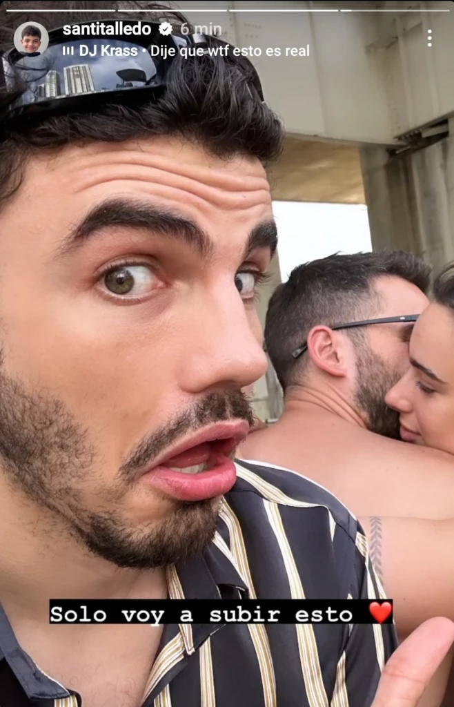 Santi Talledo, compañero de Nadie dice nada, publicó en su Instagram los primeros registros del romance, ya que fue uno de los cómplices para este amor con el que arranca el verano 2024. "Solo voy a subir esto", dijo en una historia, que musicalizó con el audio viral "Dije qué, wtf, esto es real?".
