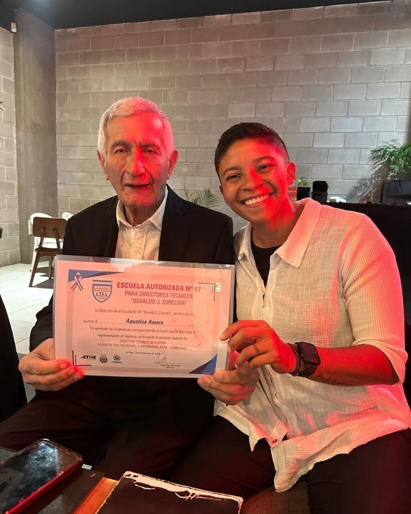 Otro de los grandes momentos que Agustina Amaro compartió con Juan Ramón Verón fue el 5 de diciembre de 2023. En esa fecha ella recibió su certificación tras aprobar el curso regular de directores técnivos en la Escuela Osvaldo Zubeldia.