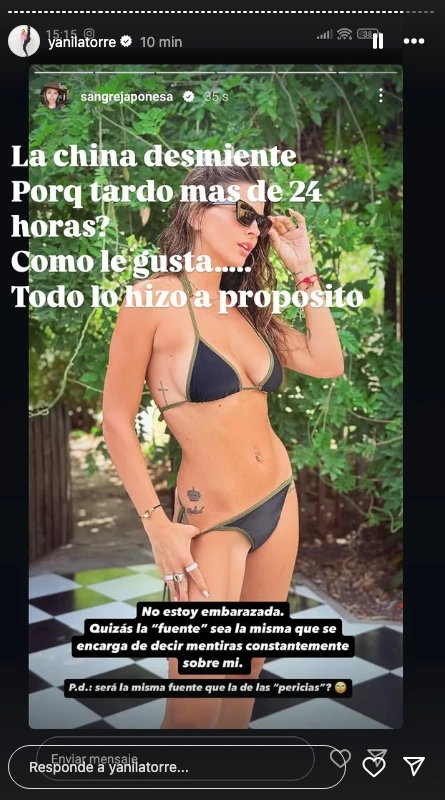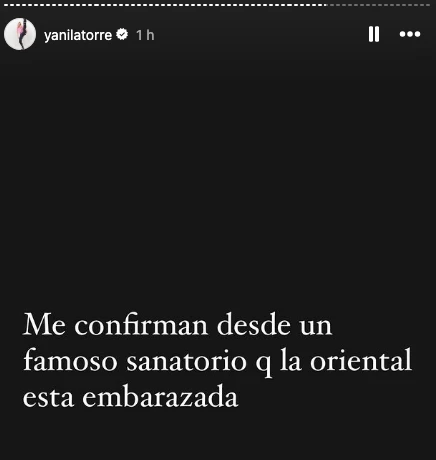 Pero esto no quedó ahí, ya que el jueves también compartió información sobre el supuesto embarazo de la China Suárez. "Me confirman desde un famoso sanatorio que la oriental está embarazada", confirmó Yanina en sus historias de Instagram.