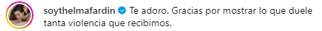 Entre los mensajes se destacó el mensaje de Thelma Fardín, quien fue parte del elenco de Patito Feo, y comentó: "Te adoro. Gracias por mostrar lo que duele tanta violencia que recibimos".