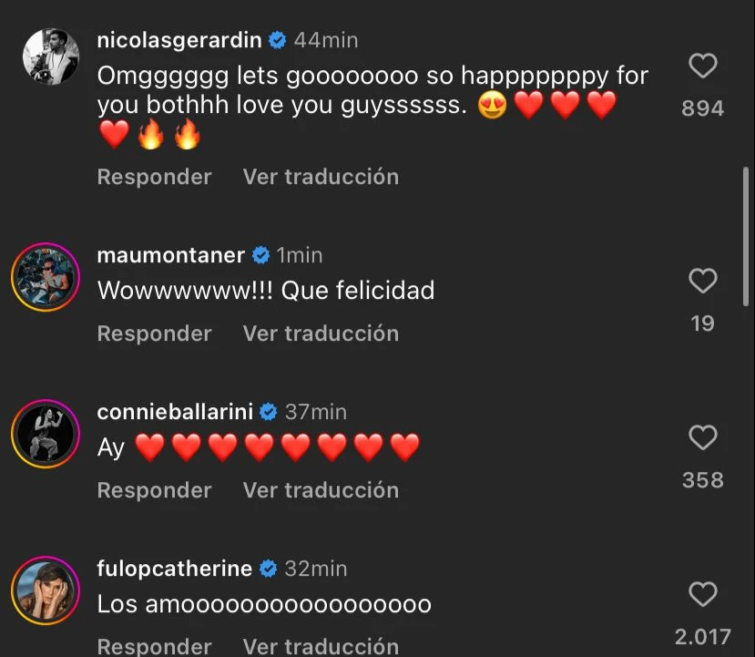 Entre las celebridades que le expresaron su apoyo se destacaron Ángel Di María, Mau Montaner, Connie Ballarini, Alice Campello, Camila Galante, Bizarrap, Leandro Paredes, Alexis Mac Allister y Claudia Villafañe.