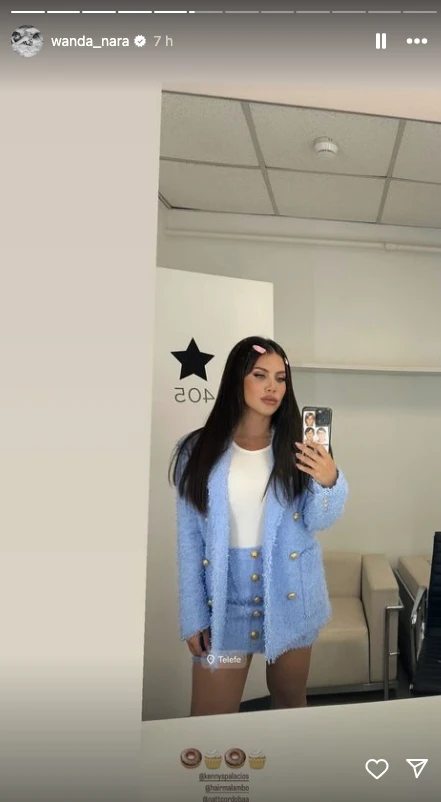 A través de sus redes sociales, Wanda estuvo compartiendo todos los detalles de su día. Es que, en sus historias subió fotos en los pasillos y camarines de Telefe, y mostró uno de sus looks para las promos de Bake Off. Para dejar en claro dónde estaba, puso la ubicación del canal y agregó emojis de pastelería.