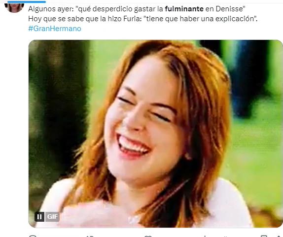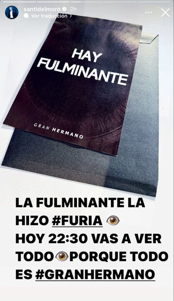 "La fulminante la hizo Furia. Hoy 22.30 vas a ver todo porque todo es Gran Hermano", escribió el famoso conductor.