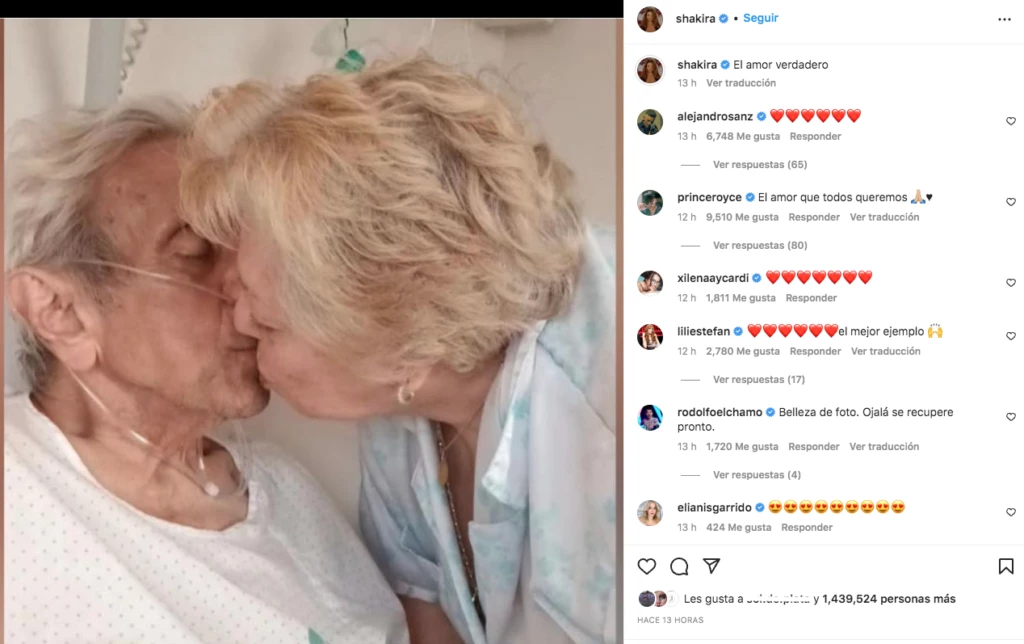 Desde la clínica donde está internado William Mebarak, Shakira compartió una tierna postal de sus padres besándose.