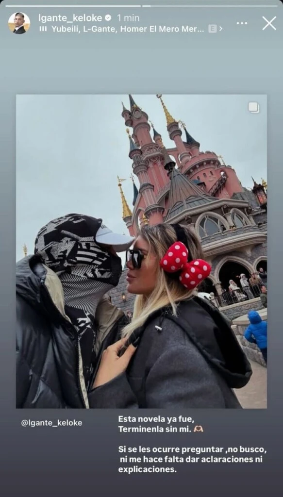 Antes de publicar su posteo oficial, L-Gante había compartido una historia con tan solo la frase "Esta novela ya fue. Terminala sin mí", pero que solo duró unos segundos, ya que la eliminó de forma inmediata para sustituirlo por su letal mensaje.