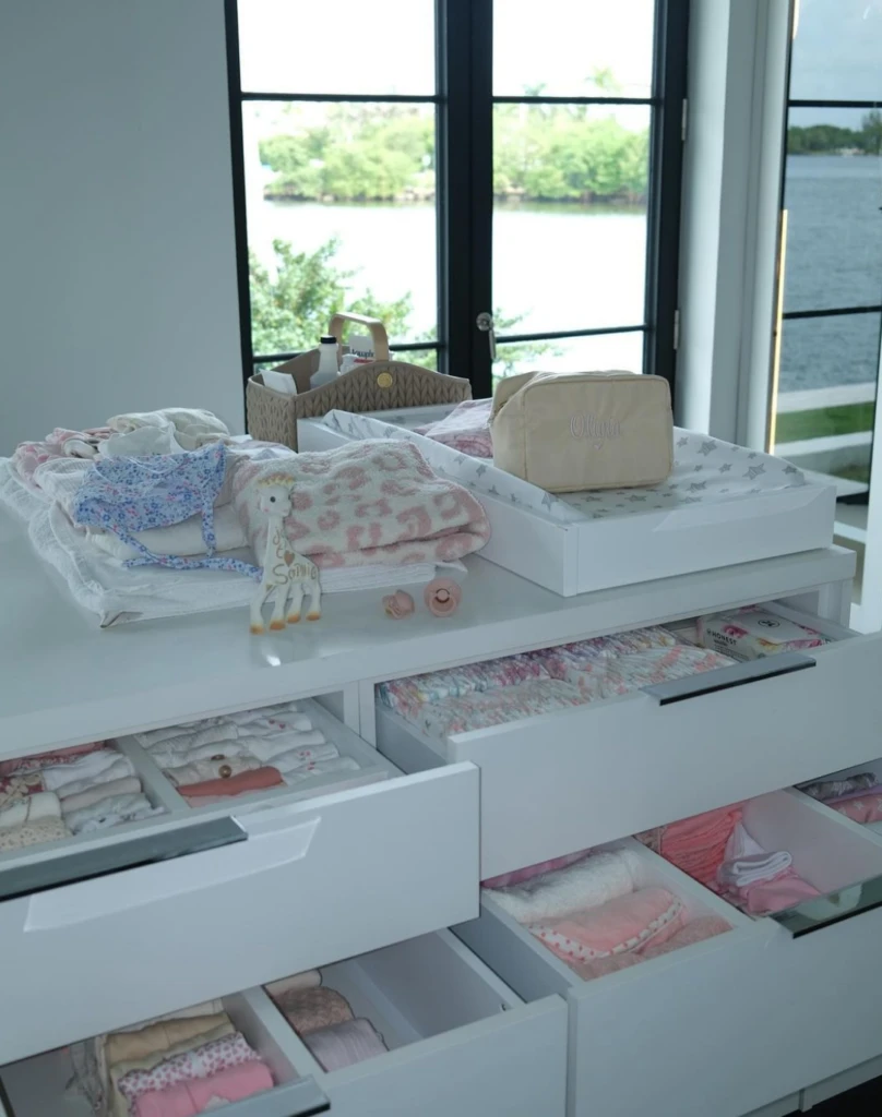 Más adelante, la empresaria dejó ver el detalle de lo que sería el vestidor de Olivia. Se trata de una cómoda cajonera completamente para ella y que ya está lleno de todos sus mini looks.