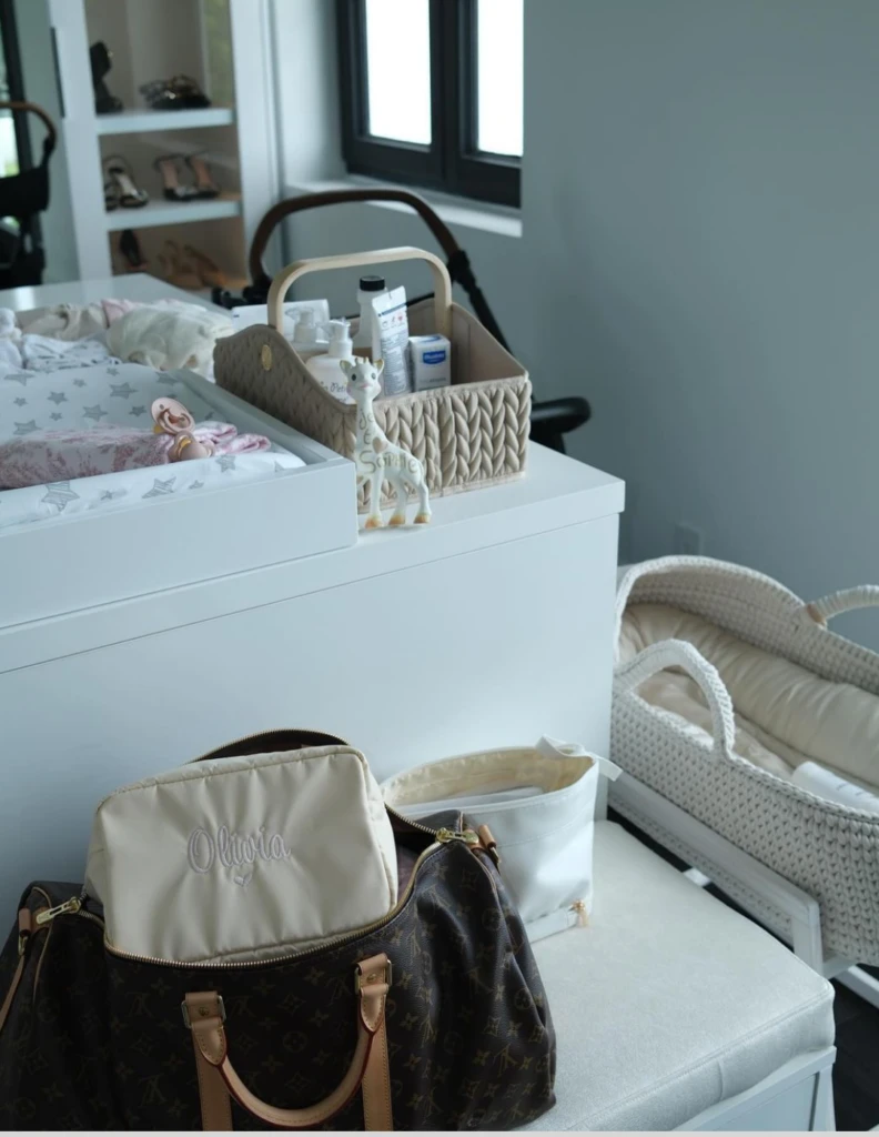 También prepararon la zona donde la cambiarán, con mantitas, sus cremitas esenciales, y un detalle no menor: sumaron sus primeros peluches y el chupete en color rosa que en algún momento comenzará a usar.