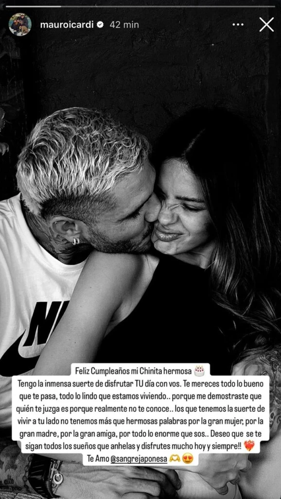 "Feliz Cumpleaños mi Chinita hermosa. Tengo la inmensa suerte de disfrutar tu día con vos. Te mereces todo lo bueno que te pasa, todo lo lindo que estamos viviendo... porque me demostraste que quién te juzga es porque realmente no te conoce", comenzó diciendo Icardi junto a una tierna foto de ambos en blanco y negro.