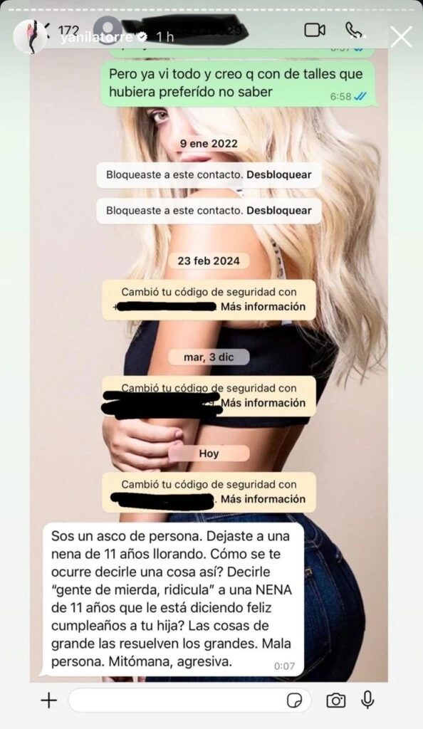 Más adelante, la ex Casi Ángeles agregó: "Decirle 'gente de mierda, ridícula', a una nena de 11 años que le está diciendo feliz cumpleaños a tu hija. Las cosas de grandes las resuelven los grandes. Mala persona, mitómana, agresiva", tiró indignada, luego de una aparente llamada fallida entre las partes.
