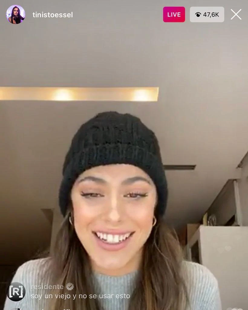 Al querer sumarlo a la charla y ante casi 50 mil personas conectadas, Residente no sabía cómo unirse y dijo, ante las carcajadas de Tini: "Soy viejo, no sé cómo usar esto".