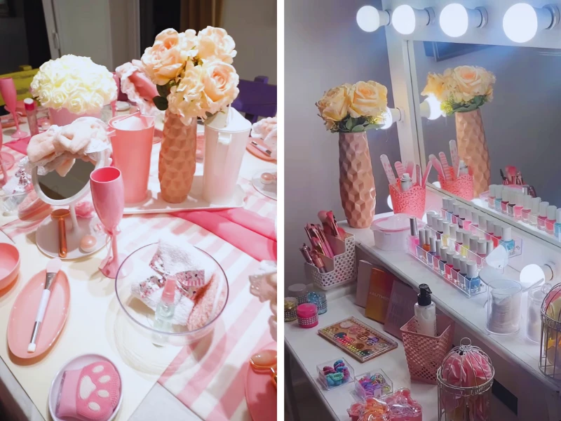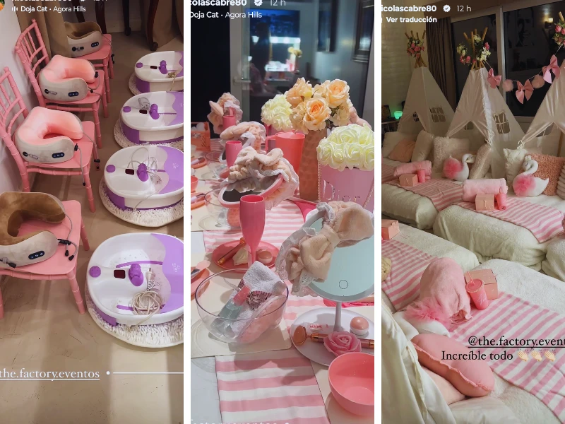 En las imágenes se observa cómo convirtieron la casa de Cabré en un spa para chicas donde había de todo para consentirlas: desde máquina de hidromasajes para pies y para masajes en el cuello hasta estación de skincare, glitter, maquillaje y esmaltes para uñas.