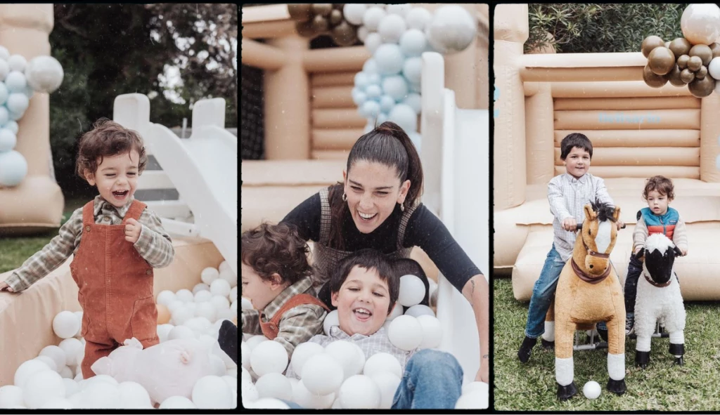 En el exterior de la fabulosa casa de Juana y Sebastián Graviotto instalaron los juegos para todos los amiguitos del cumpleañero. La atracción principal fue el inflable y el pelotero, pero sin dudas los caballos de peluche para realizar mini cabalgatas se llevaron toda la atención entre los más pequeños.