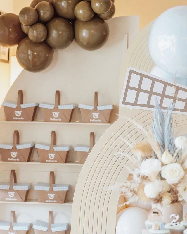 Para los amiguitos de Beli se sumó un gran detalle que encantó a todos: las bolsitas de souvenir. Para este ítem realizaron pequeñas canastitas súper campestres que guardaban regalitos para todos los mini invitados.