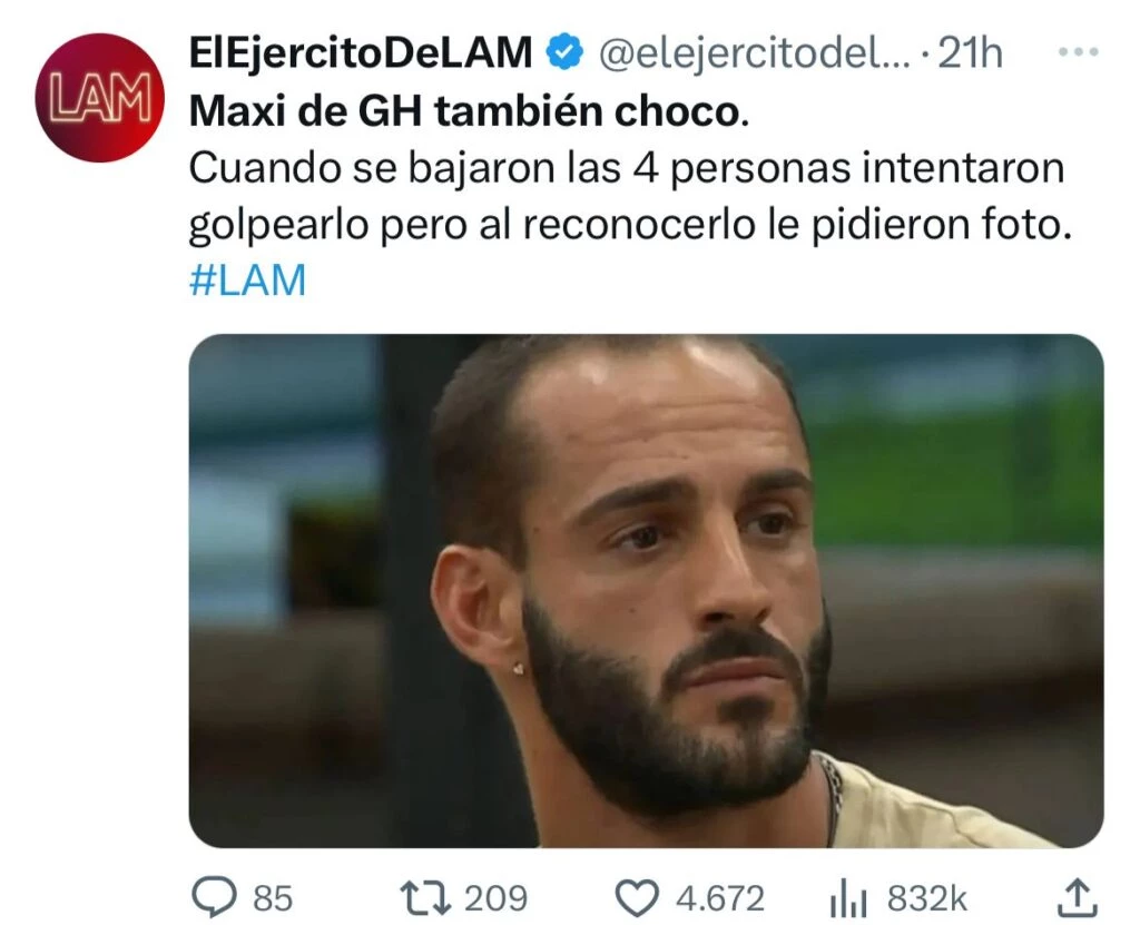 Luego, en relación a lo ocurrido con Maxi, sumó: “Siempre lo digo, pero nadie te prepara para el lado B del reconocimiento. Obviamente tiene sus cosas hermosas, pero otras que son muy fuertes para algunos. Realmente me duele saber que hay gente que disfruta lastimar a otros, de inventar cosas, de poner un título falso en una nota con tal de tener un click. No puedo entenderlo, por más de que sea para “el show”, que sean “jodas”, hay mucha impunidad detrás de algunos medios y cuentas que a mí me asusta realmente”.