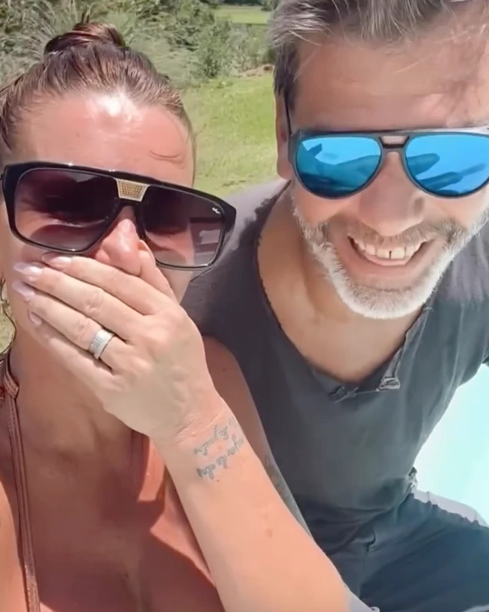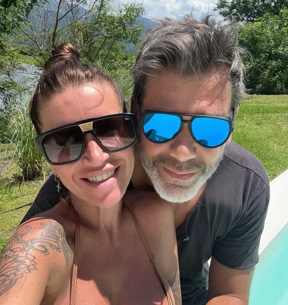 La última foto del posteo era una postal del momento en que grabaron el video, de Ramiro abrazando a Florencia, los dos muy felices de cara al sol en su enorme parque. "Un roto para una descosida", escribió la conductora, junto a un corazón y un emoji de una curita.