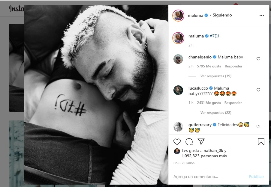 "Maluma baby", fue uno de los mensajes que más se repitió en la publicación, junto con las felicitaciones para el artista. Y respecto del enigmático en la panza de una mujer, muchos comentaron que podría tratarse de que el niño o niña nacería el 7 de junio, pero otros lo vincularon a un trabajo de publicidad de algún tema o álbum.