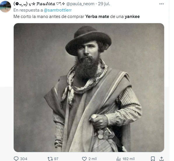 "Yo soy 'yankee' y mi esposo de Argentina y hay un montón de hate. Esto es lo que le quiero decir a los haters: está 100% hecho en Argentina. El paquete, el sticker y la yerba está hecho en Argentina", remarcó mientras sostenía uno de los ejemplares de su marca.