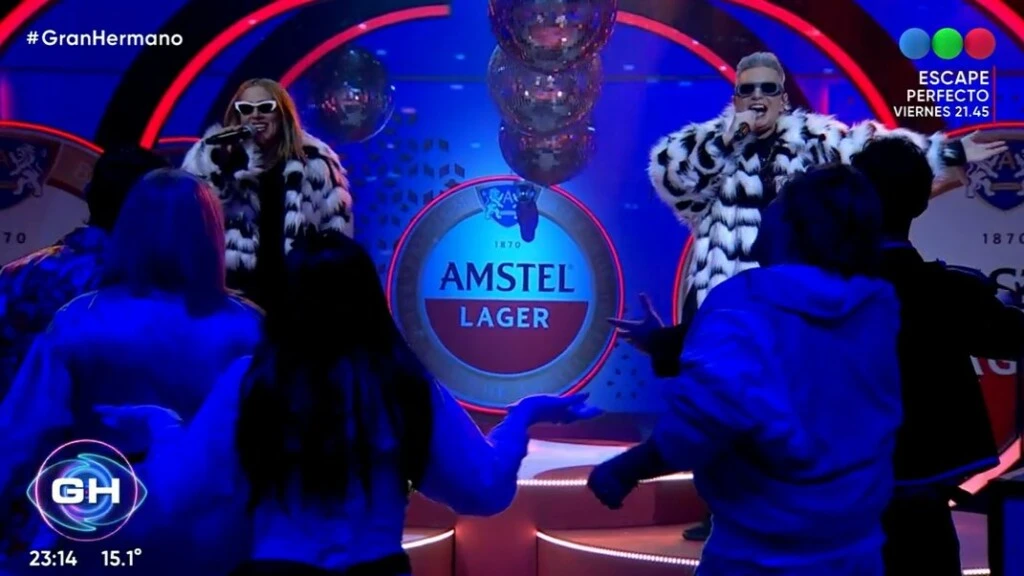 Los artistas hicieron un breve recorrido por la casa y no pasaron desapercibidos con sus tapados felpudos al mejor estilo black and white. Acto seguido, se ubicaron en el sector del SUN, donde les prepararon una tarima para que los jugadores pudieran disfrutar de principio a fin del performance de esta noche.