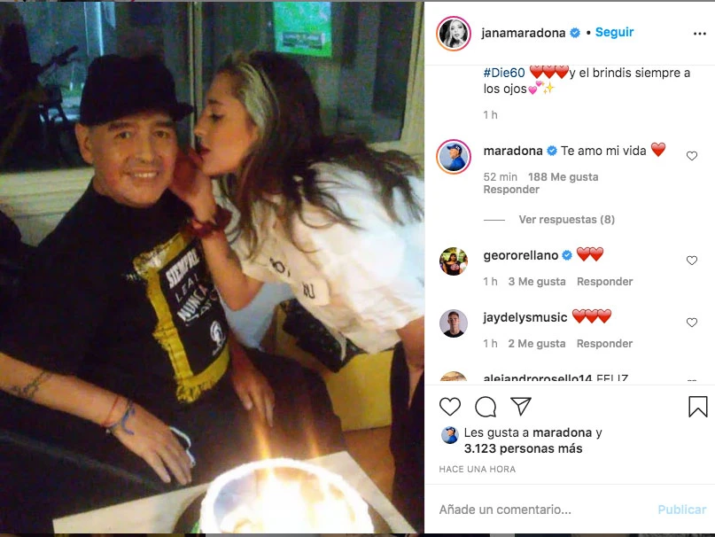 Quien también le dedicó sentidas palabras fue Jana (24), otra de las hijas de Maradona, fruto de una breve relación del exfutbolista con Valeria Sabalaín, quien desde Instagram saludó a su papá.