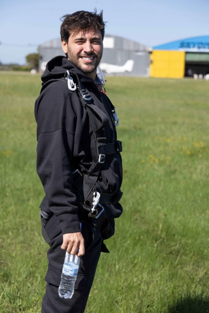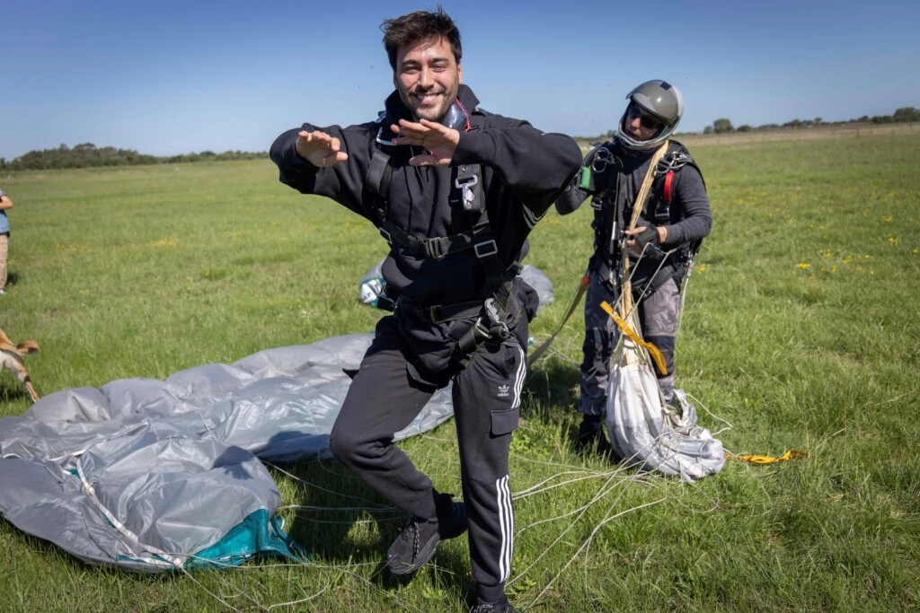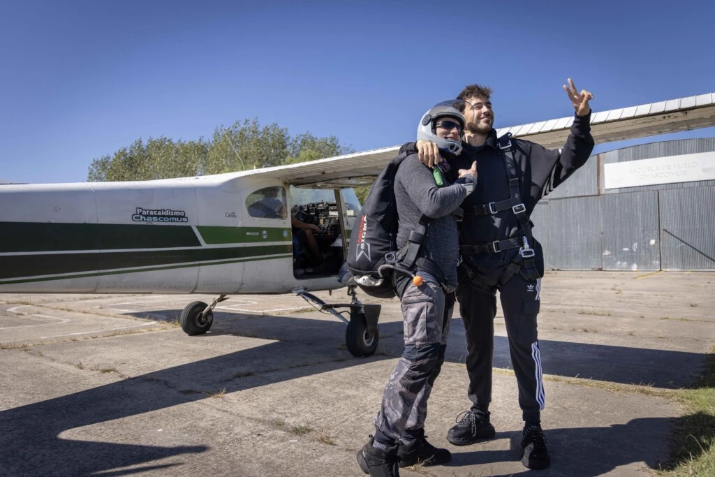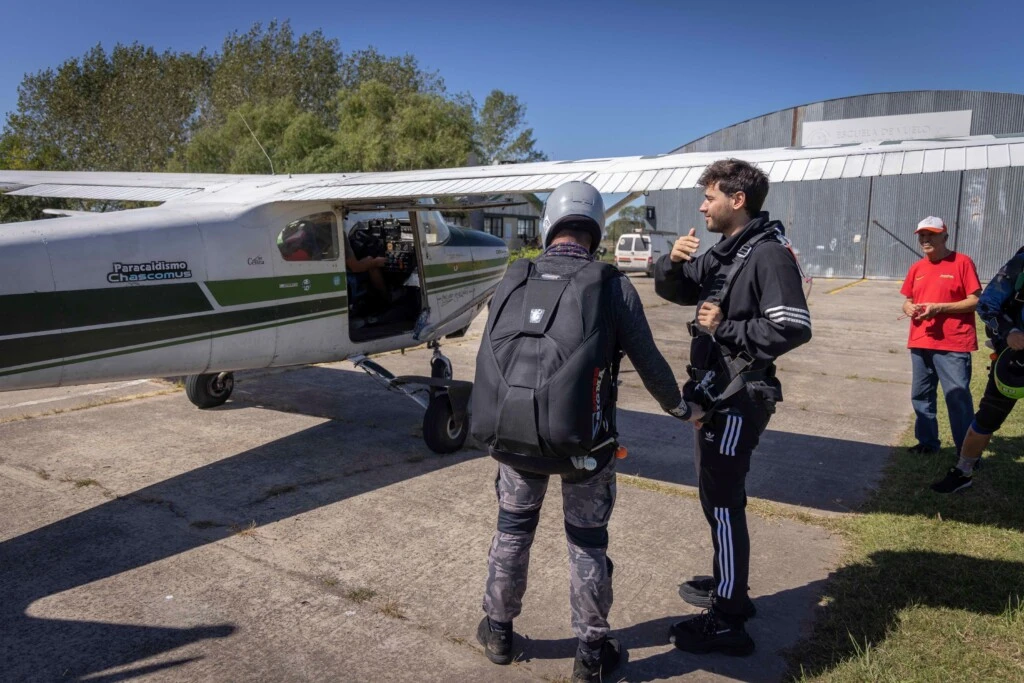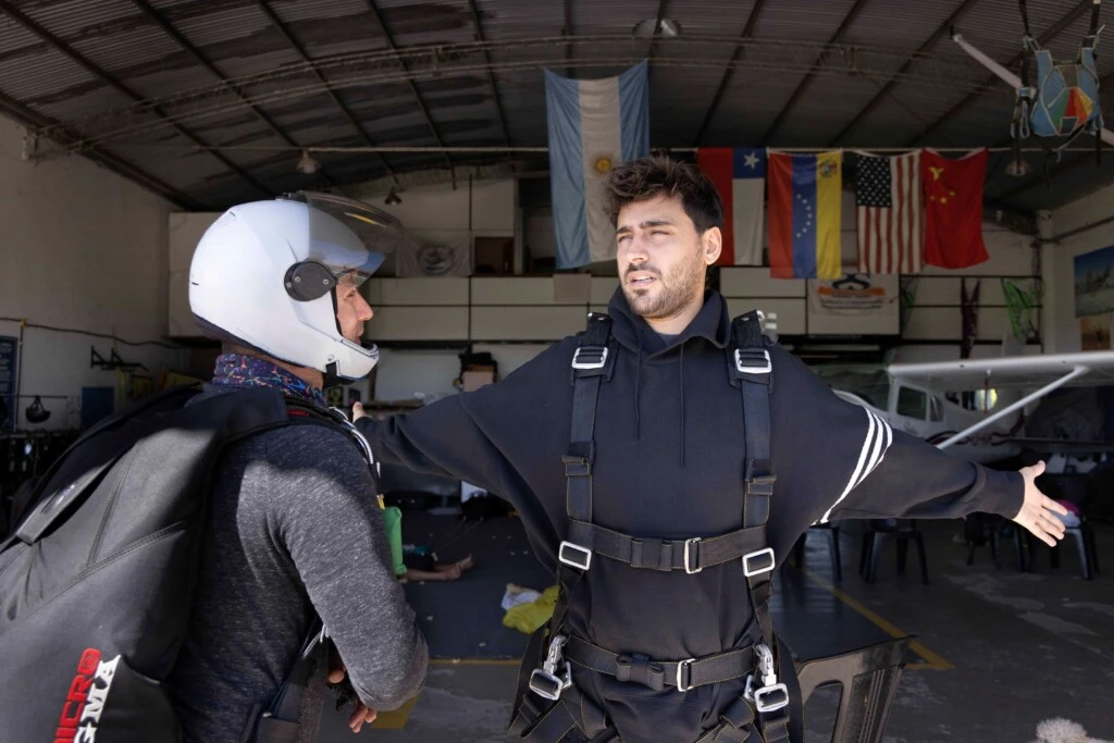 La jornada comenzó temprano: el equipo de GENTE pasó a buscar al joven influencer y juntos se dirigieron hacia Paracaidisimo Chascomús, club de paracaidismo profesional argentino e internacional, a una hora de la ciudad porteña.