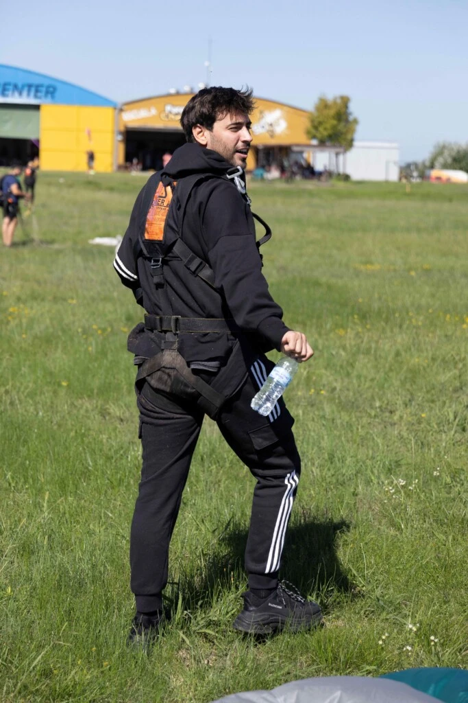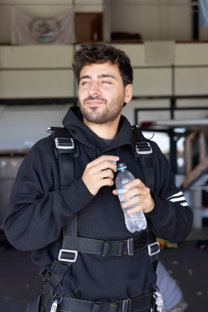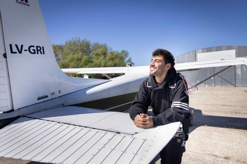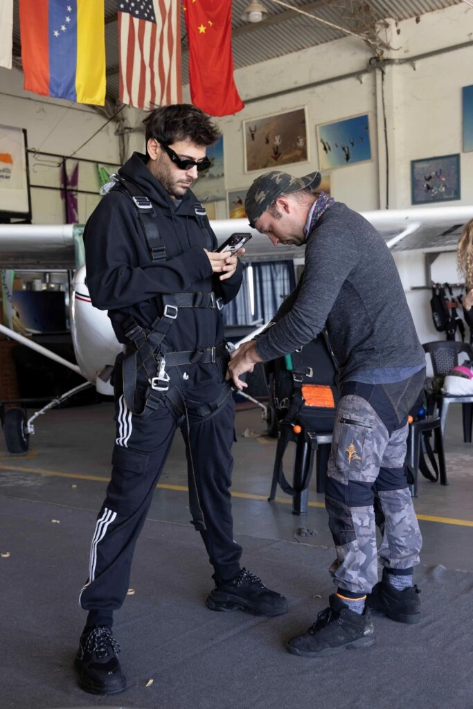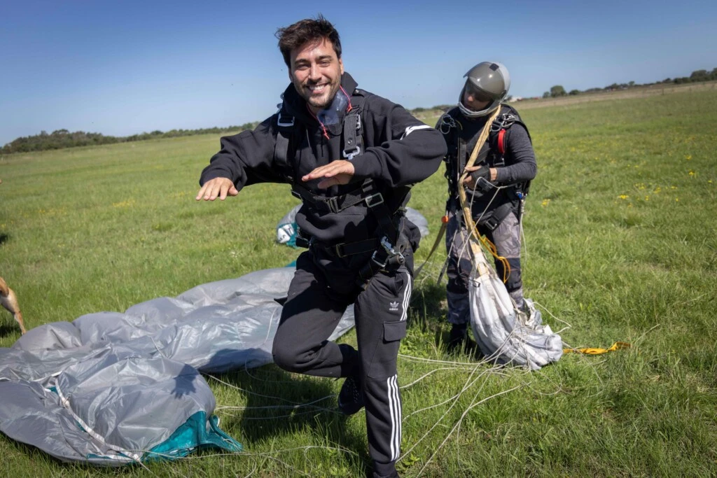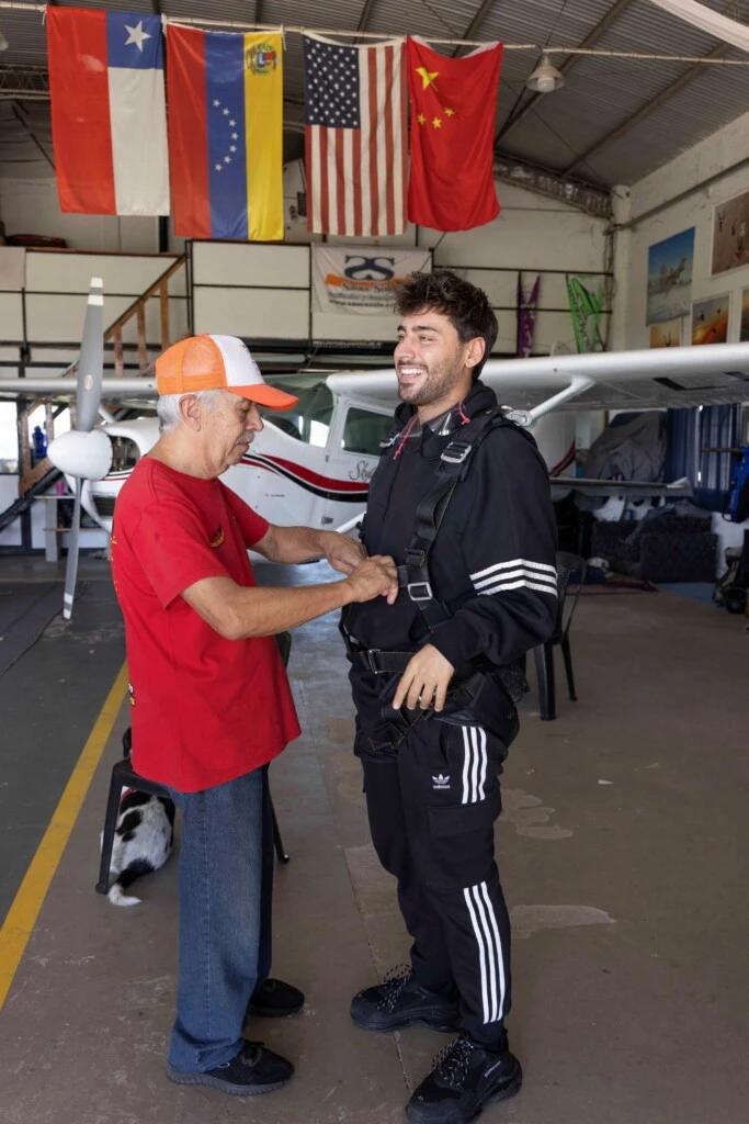 La jornada comenzó temprano: el equipo de GENTE pasó a buscar al joven influencer y juntos se dirigieron hacia Paracaidisimo Chascomús, club de paracaidismo profesional argentino e internacional, a una hora de la ciudad porteña.