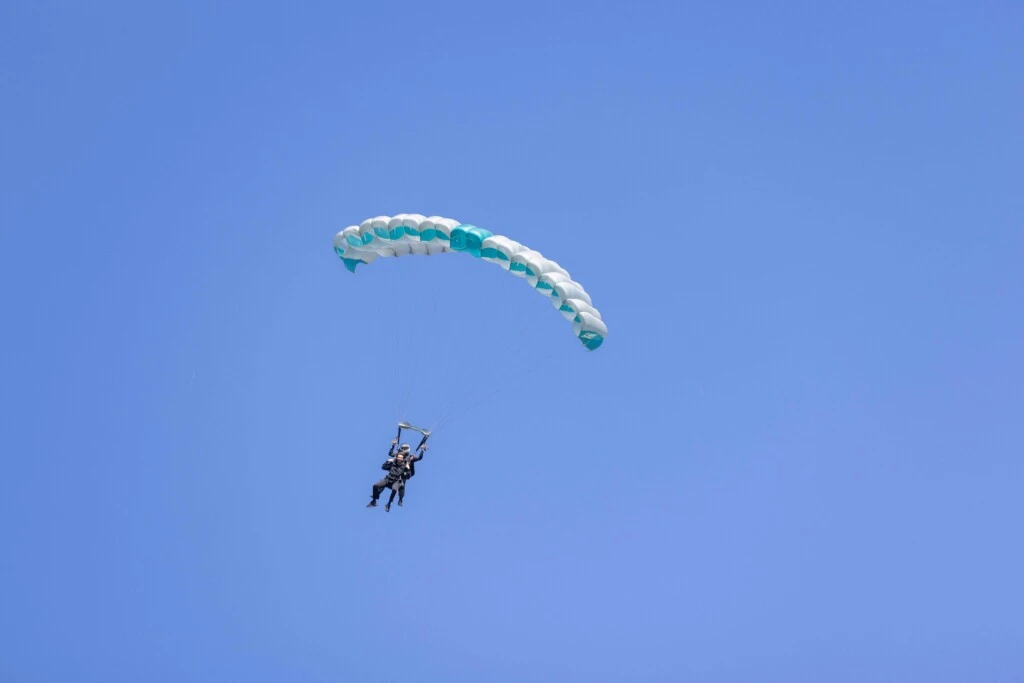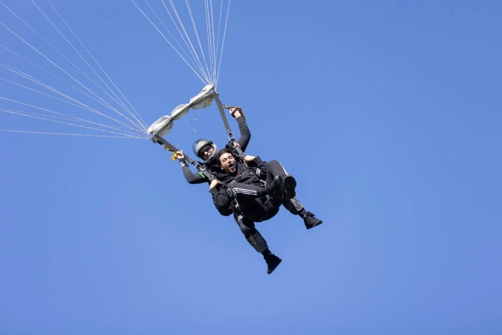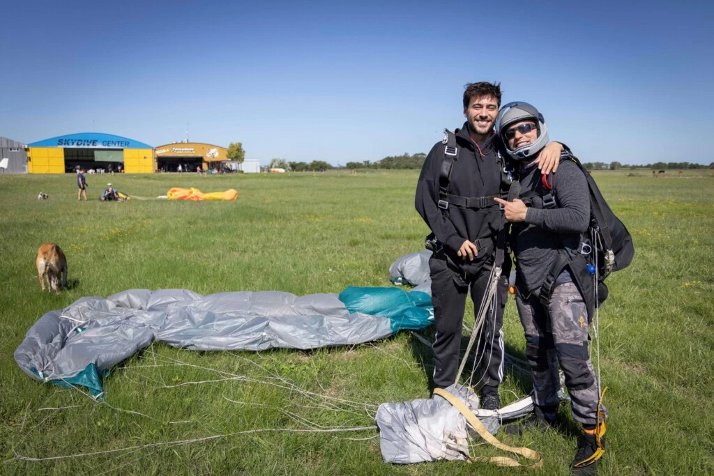 Acto seguido, se anunció la apertura de la puerta indicando el comienzo de la caída libre: el pico máximo de adrenalina cayendo a más de 200 km/h durante 40 segundos. A 1500 metros el instructor accionó el paracaídas principal y Lizardo pudo disfrutar un vuelo por las cercanías al aeródromo durante unos minutos hasta llegar a tierra: una combinación de emoción y paisajes inolvidables.