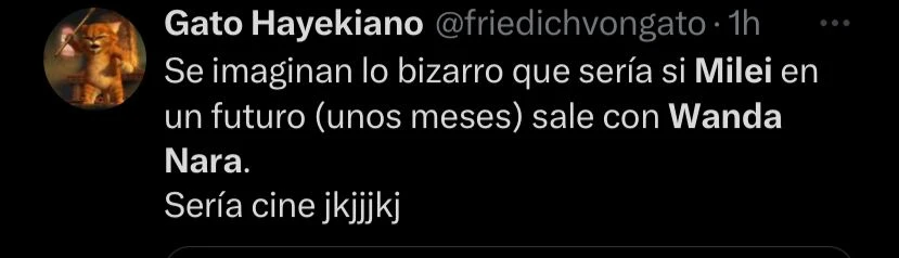 Algunos usuarios "shippearon" al presidente y a la conductora: "Se imaginan lo bizarro que sería si Milei en un futuro sale con Wanda Nara... Cine".