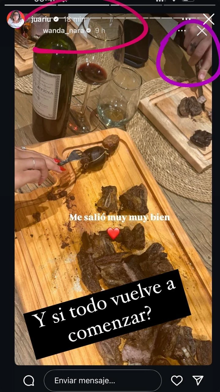Al ver la historia, rápidamente Juariu la compartió en sus redes sociales y comentó: "¿Y si todo vuelve a comenzar?". De esta manera, la influencer hizo referencia a que esta cercanía entre Wanda y Maxi podría terminar en una reconciliación, algo que parece imposible ya que cada uno rehizo su vida.