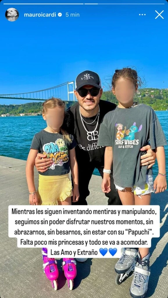 Pero esto no fue todo, ya que luego sumó una segunda historia, esta vez eligió una foto con sus dos hijas, a las que tapó la cara, y un mensaje para ellas. "Mientras les siguen inventando mentiras y manipulando, seguimos sin poder disfrutar nuestros momentos, sin abrazarnos, sin besarnos, sin estar con su 'Papuchi'. Falta poco mis princesas y todo se va a acomodar. Las amo y extraño", escribió en sus redes sociales.