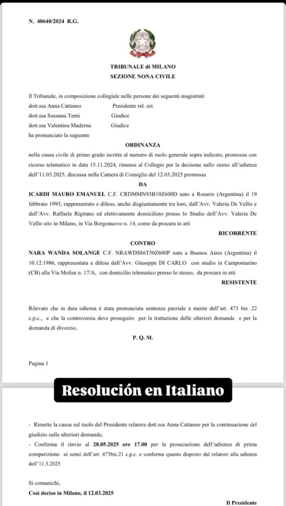 Luego, compartió el documento de la sentencia que confirmaría esta noticia, que fue firmado por un tribunal de Milán. A su vez, minutos más tarde, Elba Marcovecchio lo confirmó en el programa de Viviana Canosa en El Trece: "Acaba de salir la sentencia del divorcio".