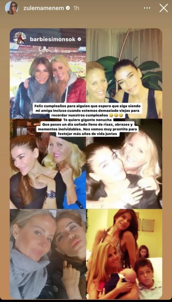 El saludo de Barbie Simons, íntima amiga de Zulemita Menem