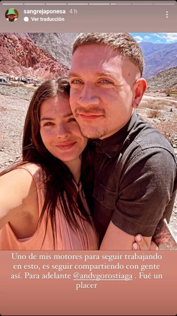 Ya en la recta final de su estadía en el norte argentino, la artista posteó una adorable imagen junto a uno de compañeros de elenco, Andy Gorostiaga. "Uno de mis motores para seguir trabajando en esto es seguir compartiendo con gente así. Para adelante @andygorostiaga, fue un placer", escribió en sus historias de Instagram. Rápidamente los usuarios interpretaron -sobre todo su primera frase- como un claro indicio de que ya encuentra apoyo en otras personas, y no en su expareja.