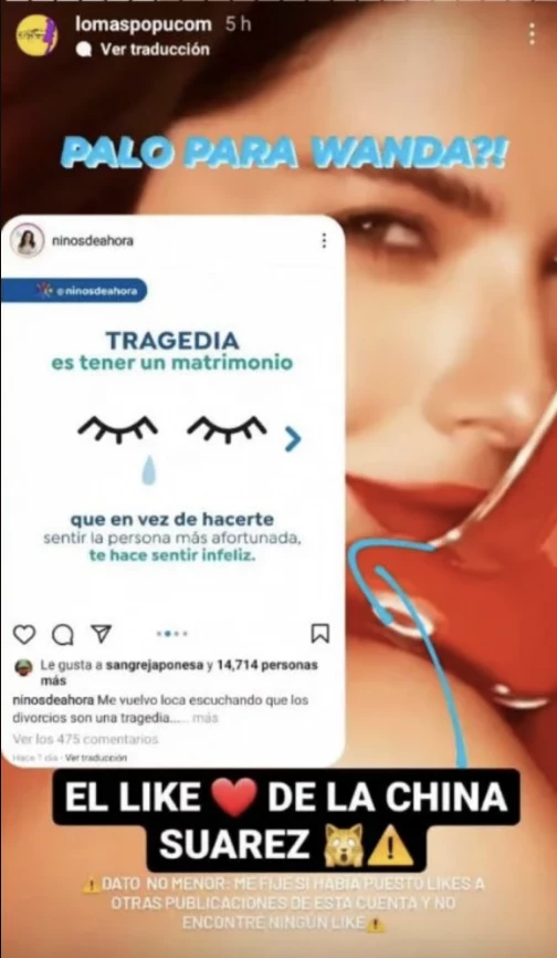 "Tragedia es tener un matrimonio que en vez de hacerte sentir la persona más afortunada te hace sentir infeliz", reza la contundente frase a la que Eugenia no dudó en dejarle su "Me gusta". Ante semejanza hallazgo, los internautas comenzaron a especular que podría ser una indirecta para Wanda Nara y Mauro Icardi tras conocerse su affaire con el futbolista.
