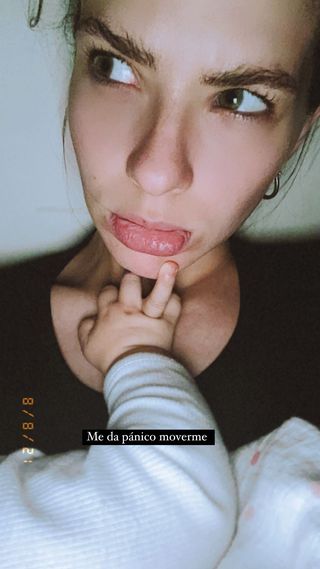 “Me da pánico moverme”, escribió la actriz junto a la foto de ella con el bebé en sus brazos. Su cara de sueño lo dice todo. “Amancio se desveló, 2:35 de la madrugada”, agregó en otra postal con cara de puchero.